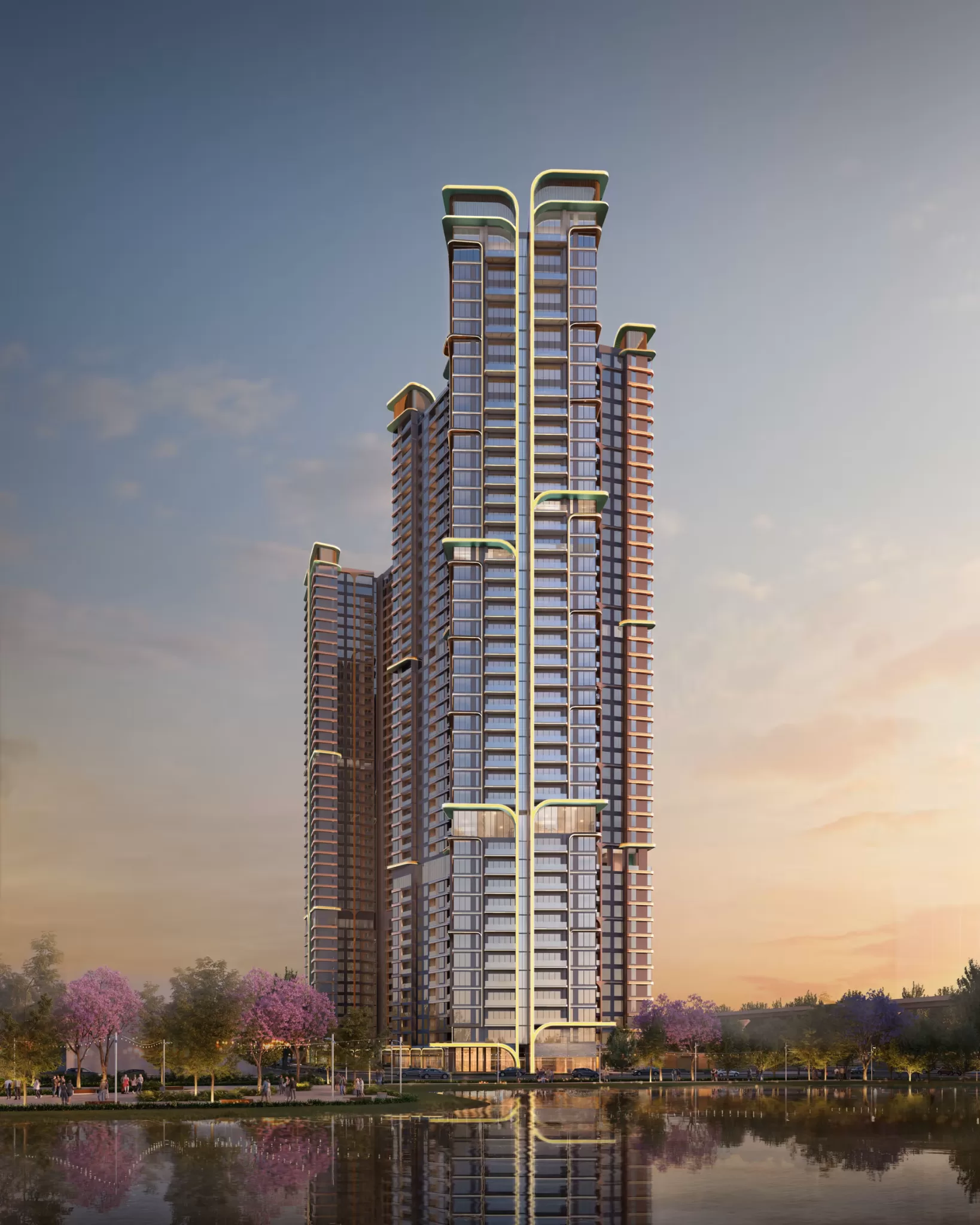 Từ tâm, hai tòa tháp LUMIÈRE Essence Peak kiêu hãnh vươn cao bên hồ, tạo nên một điểm nhấn kiến trúc đầy phẩm khí giữa không gian thanh thoát, ngập tràn ánh sáng và hơi thở thiên nhiên. Lấy cảm hứng từ vẻ đẹp thanh cao của hoa sen, từng đường cong mềm mại được chắt lọc và khắc họa thành ngôn ngữ kiến trúc hiện đại, nơi sự uyển chuyển giao hòa cùng nội lực mạnh mẽ, kết nối hài hòa giữa di sản và tương lai, tựa như đoá sen bừng nở trong kỷ nguyên vươn mình của dân tộc.