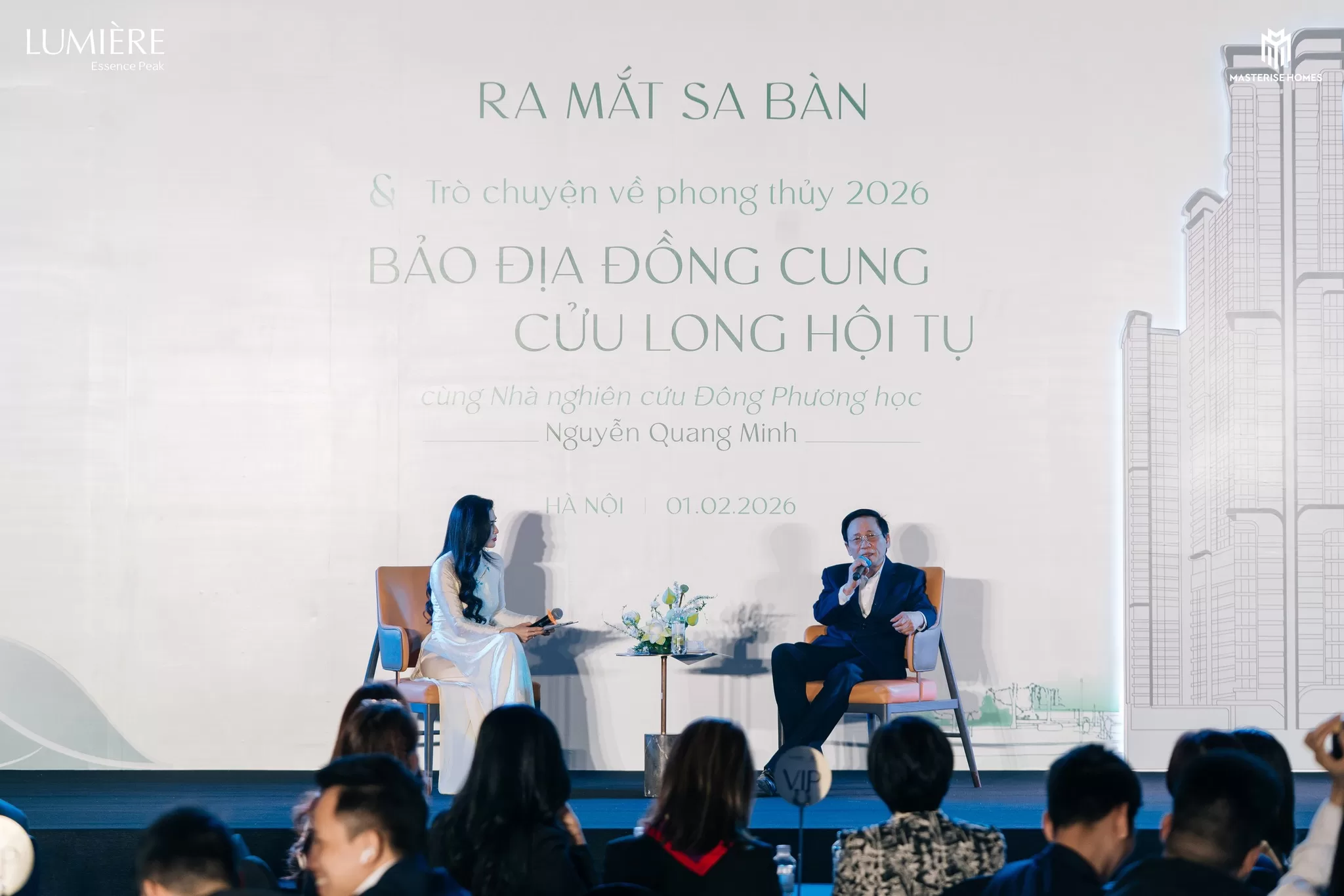 Sáng ngày 01/02/2026, trong không gian ấm cúng tại The Galleria by Masterise Homes, sự kiện ra mắt sa bàn dự án LUMIÈRE Essence Peak & trò chuyện phong thuỷ 2026 với chủ đề “Bảo địa đồng cung – Cửu long hội tụ” cùng nhà nghiên cứu Đông phương học Nguyễn Quang Minh đã diễn ra trong không khí trang trọng và chỉn chu, quy tụ đông đảo Quý khách hàng cùng các đối tác phân phối chiến lược.