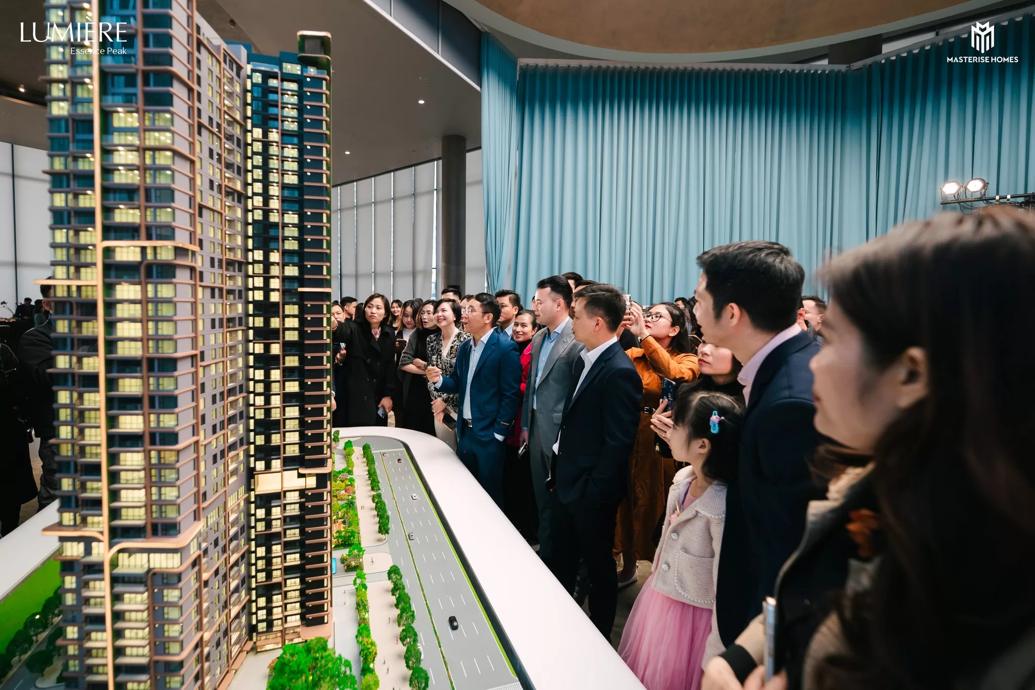 Tâm điểm của sự kiện là nghi thức ra mắt sa bàn dự án, được dàn dựng kết hợp cùng tiết mục múa tương tác lấy cảm hứng từ hình tượng hoa sen – biểu tượng của vẻ đẹp thanh tao, kiêu hãnh và tinh tế và cũng chính là cảm hứng kiến tạo nên LUMIÈRE Essence Peak. Sa bàn dự án được thiết kế, hoàn thiện tỉ mỉ đến từng chi tiết, giúp khách mời hình dung rõ nét tổng thể không gian sống trong tương lai – nơi kiến trúc, thiên nhiên và nhịp sống đô thị hiện đại hòa quyện hài hòa.